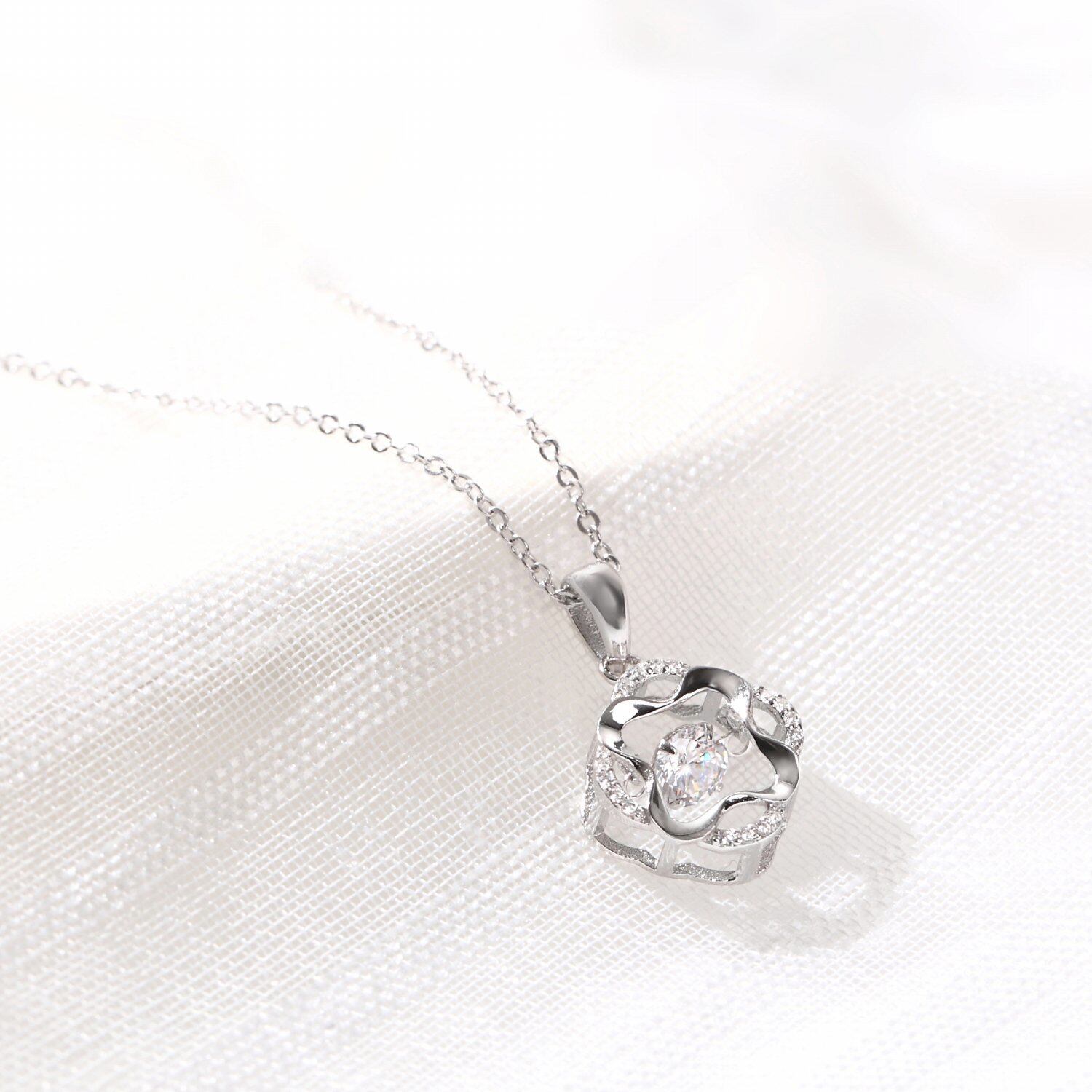 Infinity 揺れる宝石 CZダイヤモンド 925シルバー ネックレス ペンダント 925純銀製 ジュエリーケース 記念日 誕生日 プレゼント 贈り物 (Four Leaf Clover)