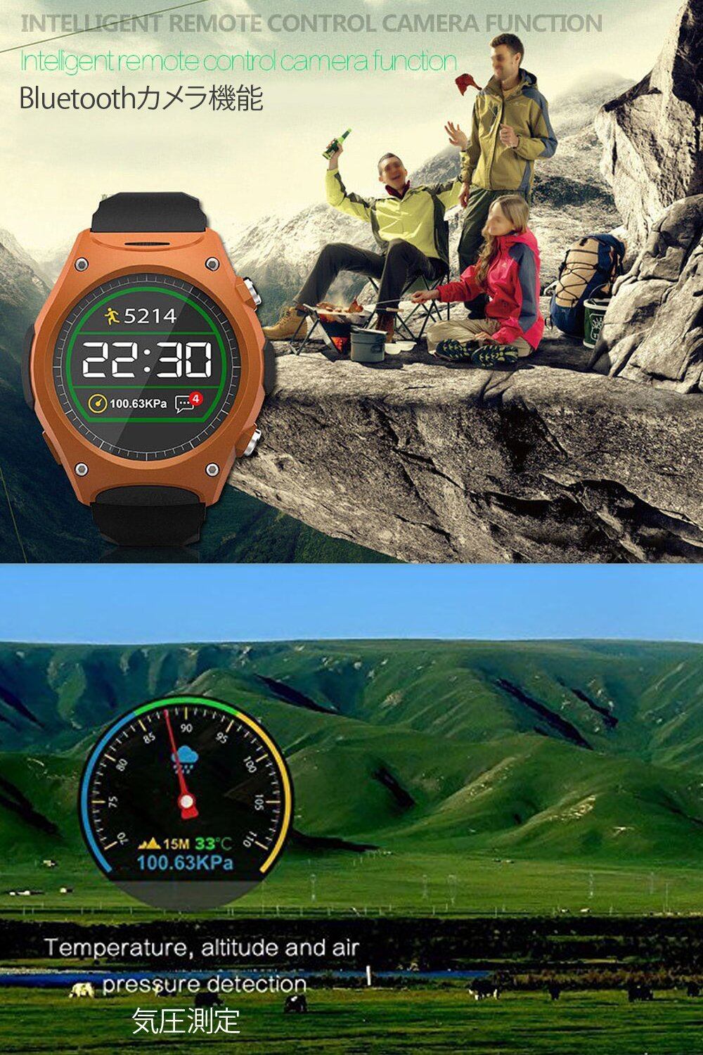 本体機能:カレンダー・時刻・日付・心拍数・気圧測定・歩数・距離・カロリー消耗表示