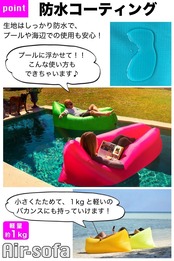 海外で大人気の「エアーソファー」 この「ポータブルエアソファー」は空気を入れて入り口を閉じるだけ。 アウトドア・キャンプ・海・山・ビーチ・公園・家の中で一瞬にして簡易「ソファー」に早変わり。 ほろ酔い加減で「ベット」としてお使いいただくと雲の上でのお昼寝気分が味わえます。