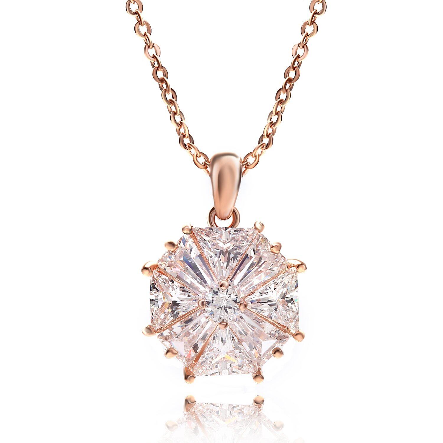 CZダイヤモンド ネックレス ペンダント キュービックジルコニア ジュエリーケース ショッパー 記念日 誕生日 プレゼント 贈り物 (Large grain CZ pink gold)